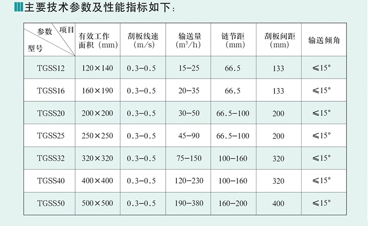 TGSS系列埋刮板輸送機常用于水平輸送顆粒和粉狀物料,亦能在15°角范圍內作傾斜輸送。同時在單點進出料基礎上也可多點進料,多點出料。設備中采用高強度刮板輸送鏈、耐磨導軌,配有防堵和斷鏈停車位置。具有整機壽命高、運行平穩、結構尺寸小、輸送量大、能耗低、物料破損率低等特點,運用于糧食、糧油、飼料等行業和散裝物料部門。